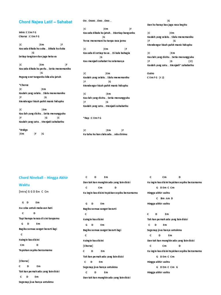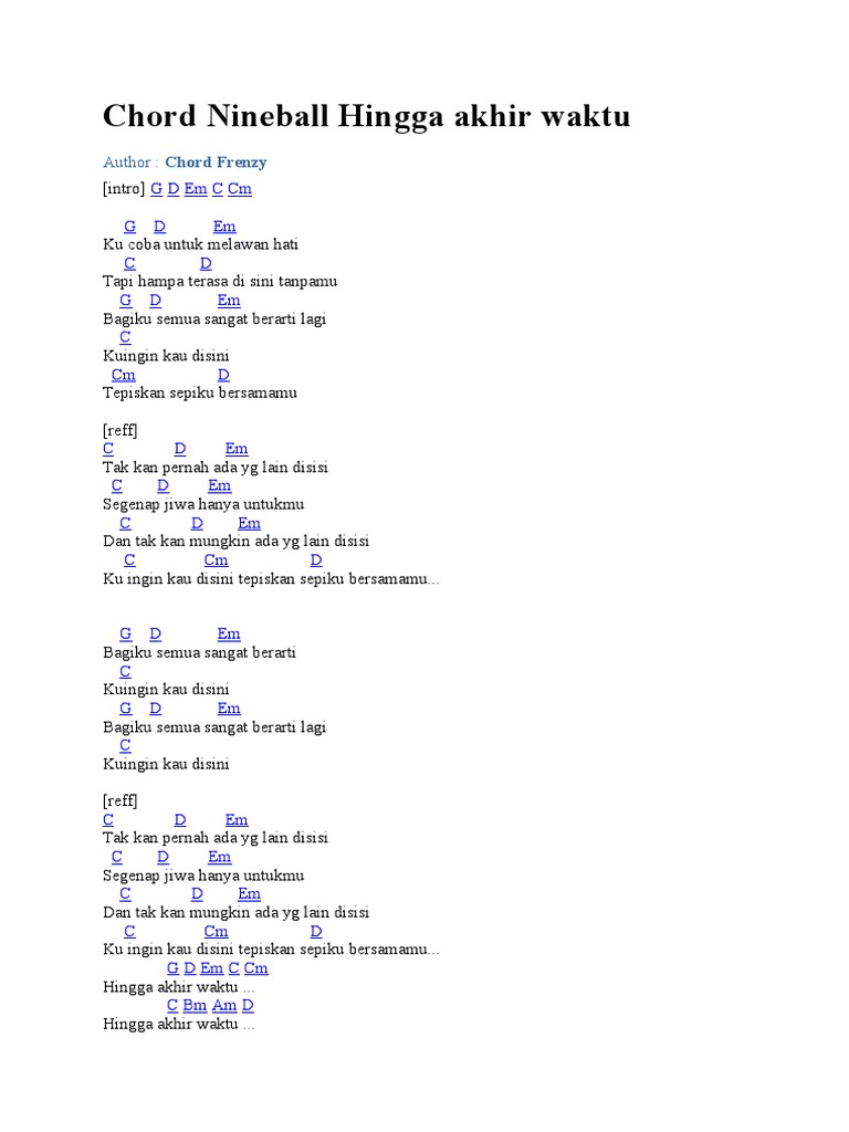 TRIBUNSOLOCOM - Chord kunci gitar dan lirik lagu Hingga Akhir Waktu dari Nineball. Em C G D dari caramu. Ku ingin kau di sini tepiskan sepiku bersamamu.