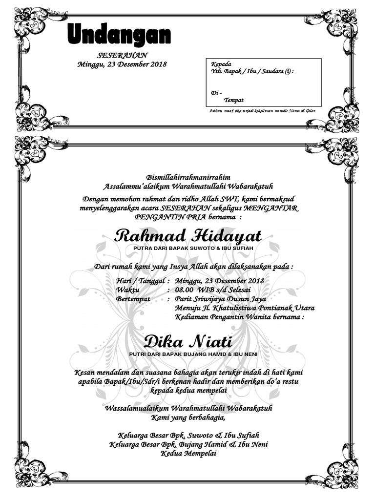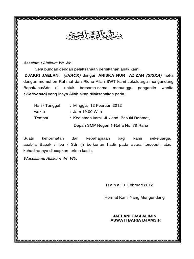 Doc Undangan Mengantar Nikah Muchtar Surullah Academia Edu