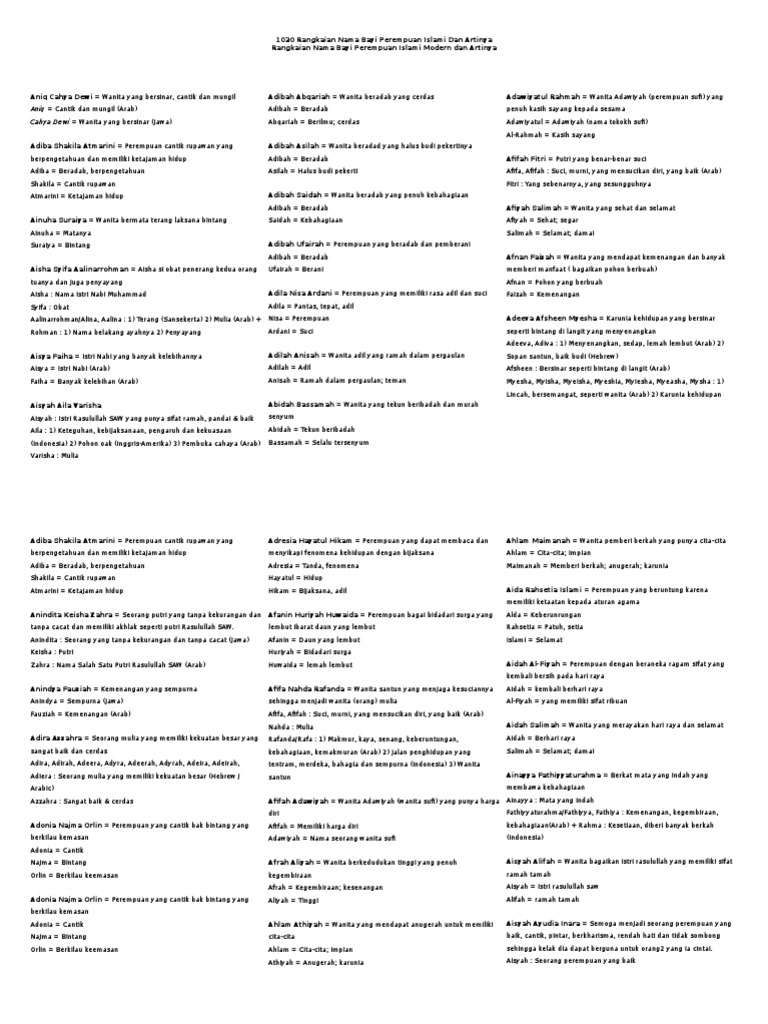 Nama Bayi Perempuan Islami Huruf A 2 3 Kata Idenamaislami Com